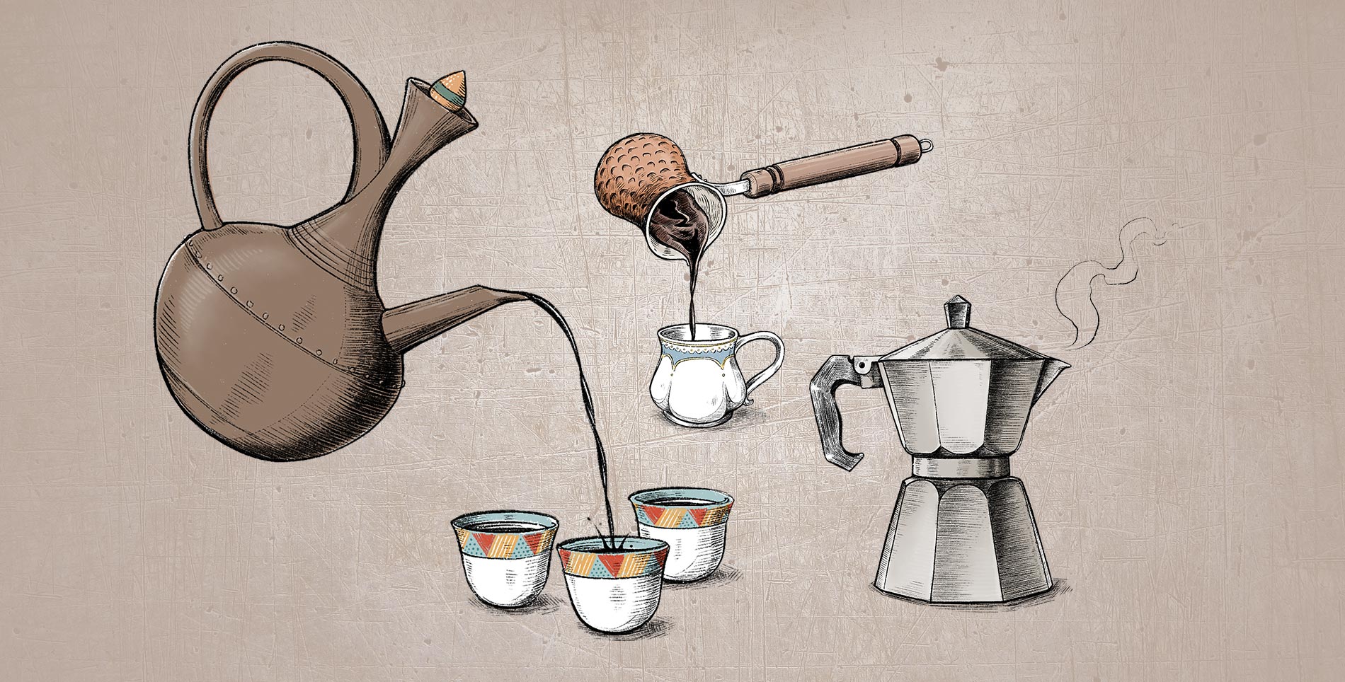 Un exemplu de ritual asociat cu cafeaua este cafeaua turcească. Aceasta este preparată prin adăugarea apei și a zahărului la cafea măcinată într-un ibric special numit cezve, iar amestecul este fiert la foc mic. Apoi, cafeaua se servește fierbinte, împreună cu ceva dulce sau cu fructe uscate.